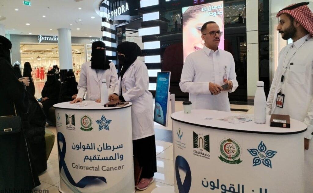 نظمت الجمعيه الخيريه للرعاية الصحيه بمنطقة تبوك ، بالتعاون مع مستشفى الملك سلمان العسكري للقوات المسلحة بالشمالية الغربيه وجامعة تبوك ممثلة بكلية الطب والتجمع الصحي لفعالية الحملة التوعويه والفحص المبكر غن سرطان القولون والمستقيم والمقام في بارك مول لمدة يومين 30/31 – 05 – 2024م من الساعه السادسه مساءآ إلى الساعه التاسعه مساءآ . وذلك بهدف توعية المجتمع بأهمية الفحص الوقائي عن سرطان القولون والمستقيم وأماكن الفحص.