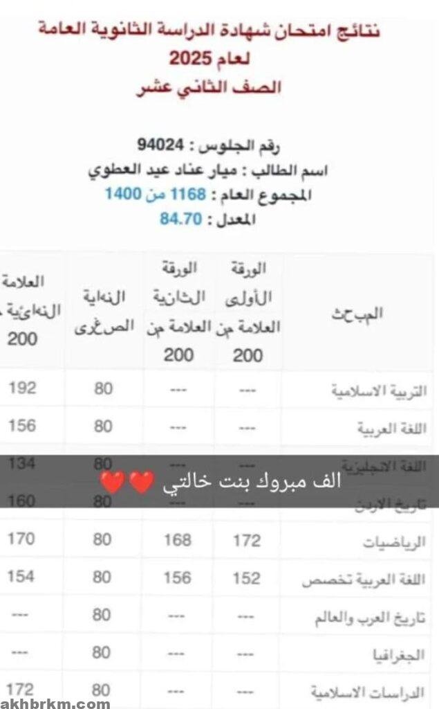 “أخباركم” تبارك لـ ميار بنت عناد السعيداني العطوي تخرجها من الثانوية العامة بالمملكة الأردنية الهاشمية
