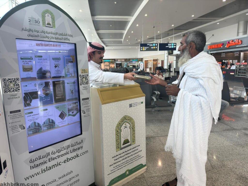 من جانب آخر، أوضح الفرع أنه تم توزيع (١٠١٥) كتيب يومي الخميس والجمعة على الحجاج القادمين عبر مطار الأمير عبدالمحسن الإقليمي في ينبع، بالإضافة إلى (١٠٣٨) من المنشورات التعريفية لمناسك الحج، بالإضافة إلى شرح تطبيق “رشد” الذي قدمته الوزارة لحجاج بيت الله ليساعدهم على أداء فريضتهم بطمأنينة ويسر.