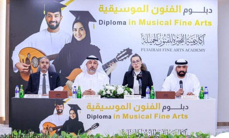 أعلنت أكاديمية الفجيرة للفنون الجميلة عن إطلاق دبلوم الفنون الموسيقية، الأول من نوعه في دولة الإمارات العربية المتحدة والمعتمد رسميًا من المركز الوطني للمؤهلات – وزارة التعليم العالي والبحث العلمي، وذلك خلال مؤتمر صحفي نظمته الأكاديمية في مدينة الإبداع – الفجيرة.