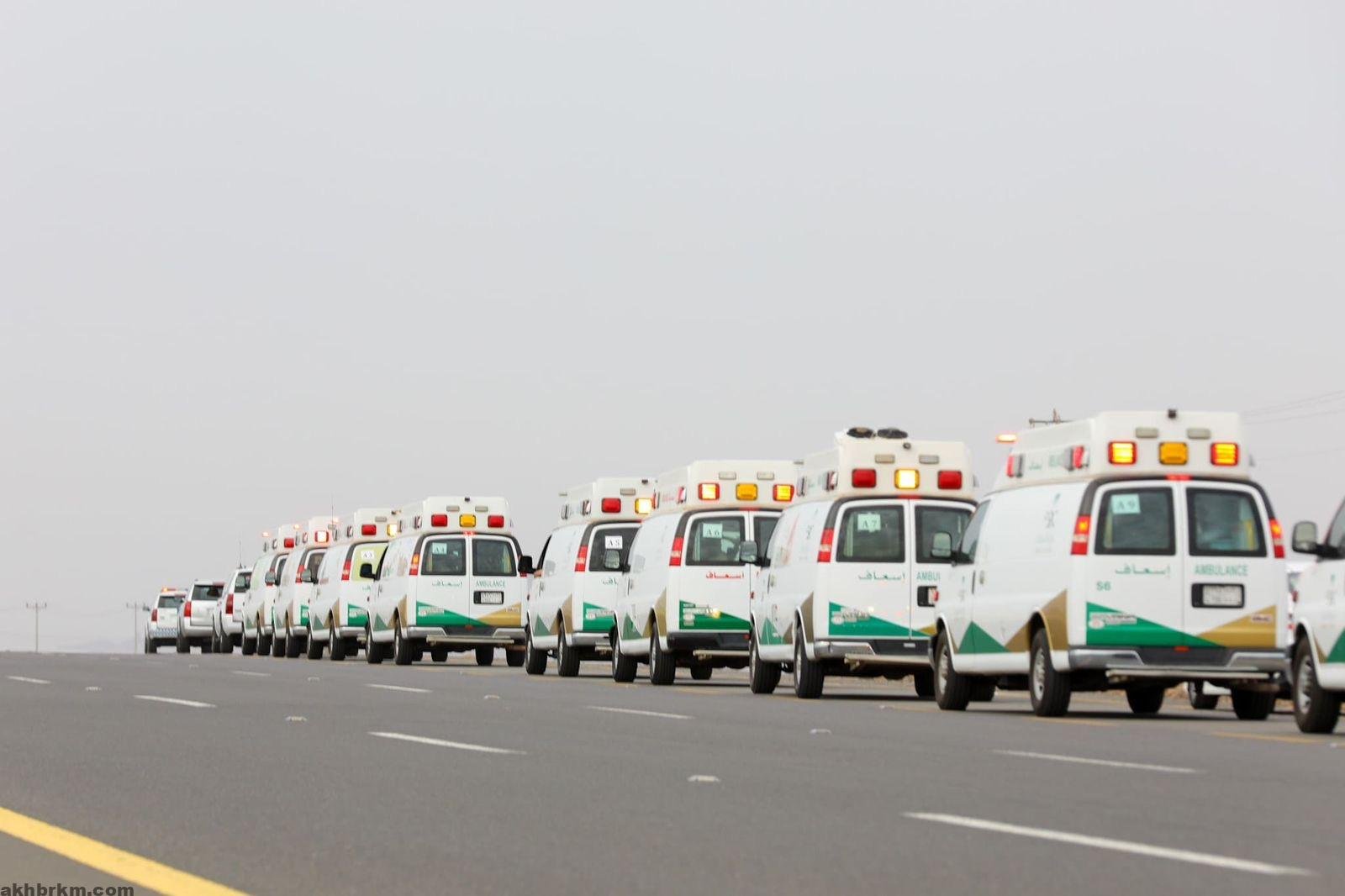 وأوضحت الوزارة أن القافلة تضم أسطولًا متكاملًا مُكوَّنًا من (16) سيارة إسعاف، مزوَّدة بجميع التجهيزات الطبية المتكاملة، مع وجود فريق طبي متخصص مكون من 83 ممارسًا متخصصًا (أطباء وتمريض ومسعفون)، إلى جانب 4 سيارات إسعاف متمركزة على طريق الهجرة بين المدينة المنورة ومكة المكرمة، وسيارتي إسعافات للعناية المركزة، إضافةً إلى 5 وحدات إسعاف مسانِدة، وكابينة أكسجين متكاملة، وورشة إسعافات متنقلة، وحافلة لنقل مرافقي المرضى.