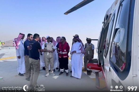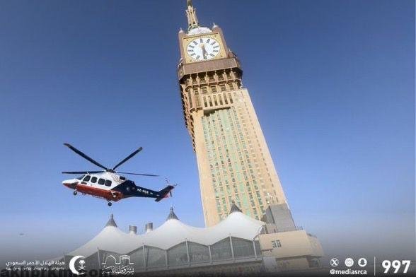 هيئة الهلال الأحمر السعودي تطلق خدمة الإسعاف الجوي من على الأبراج المحيطة بالحرم والتي ستمكن الفرق الطبية من الوصول للحجاج ونقلهم للمنشآت الصحية المتخصصة.