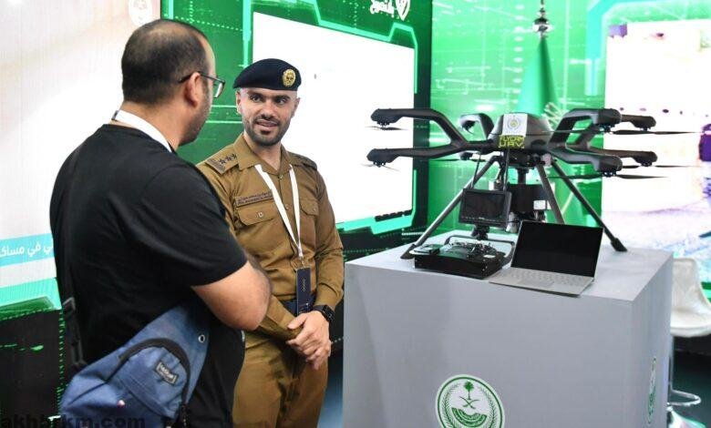 الدفاع المدني يستعرض طائرة دون طيار “الدرون” لرصد المواد الخطرة بجناح وزارة الداخلية في المعرض المصاحب لأعمال ملتقى إعلام الحج