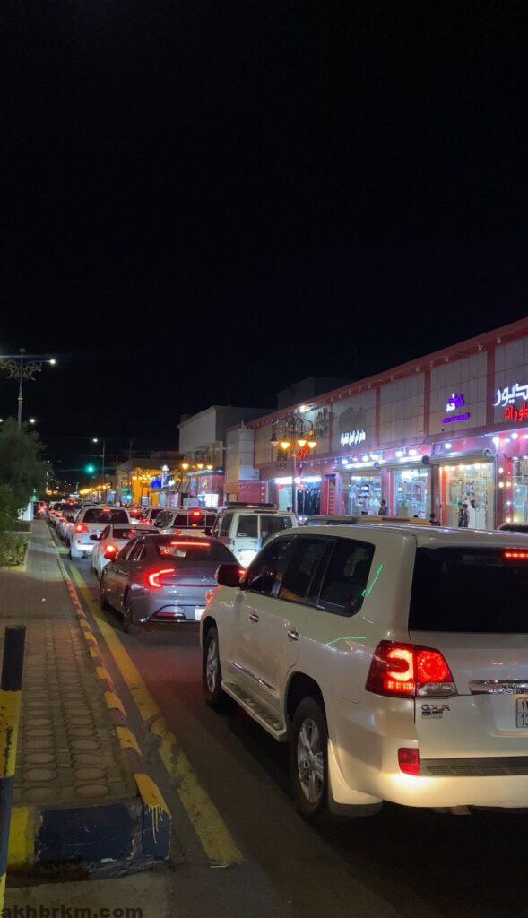 وذلك لشراء جميع احتياجات عيد الأضحى المبارك حيث شهدت المحلات التجارية ومحلات اللوازم الرجالية والنسائية إقبالا كبيرا من المواطنين والمقيمين الذين خرجوا من بعد صلاة العشاء لشراء كل ما تحتاجه الأسرة من ملابس وحلويات ومأكولات، ما أدى إلى ازدحام الشوارع ومحيط منطقة الاسواق والمحلات التجارية