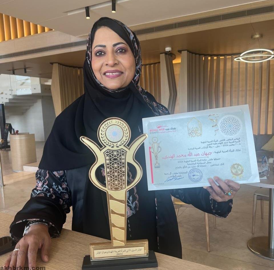 حصلت الفنانة التشكيلية والكاتبة السعودية جيهان الهندي على جائزة المرأة العربية الملهمة في مجال المسؤولية المجتمعية في