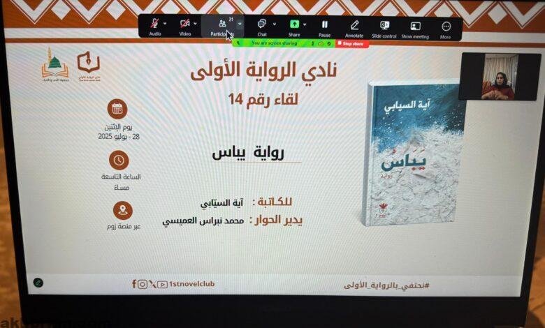 نادي الرواية الأولى يناقش رواية “يباسْ” للكاتبة العمانية آية السيّابي عبر الزووم في نقاش أدبي ثري.