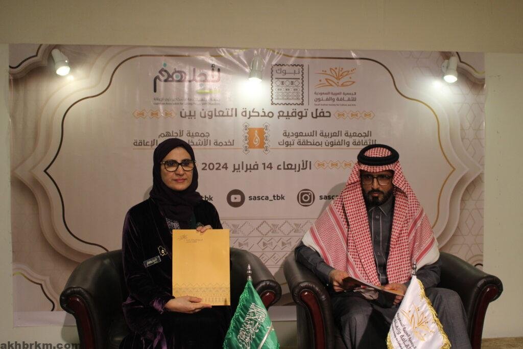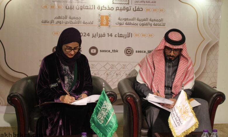 وقعت الجمعية العربية السعودية للثقافة والفنون بمنطقة تبوك مذكرة تعاون مع جمعية لأجلهم لخدمة الاشخاص ذوي الاعاقة تهدف إلى تعزيز التعاون والتنسيق المشترك لتفعيل القطاع غير الربحي لدعم التنمية الوطنية وتحقيق رؤية المملكة في الجانب الثقافي والمجتمعي