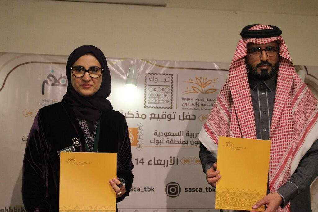 وقد تمت مراسم توقيع مذكرة التعاون في مقر جمعية الثقافة والفنون بتبوك وذلك بحضور صاحبة السمو الاميرة نوف بنت عبدالرحمن بن ناصر ال سعود رئيس مجلس إدارة جمعية لأجلهِم حيث مثلت سموها التوقيع من جانب جمعيّة لأجلهم، فيما مثل جمعية الثقافة والفنون بتبوك الاستاذ ماجد ناشي العنزي مدير الجمعية