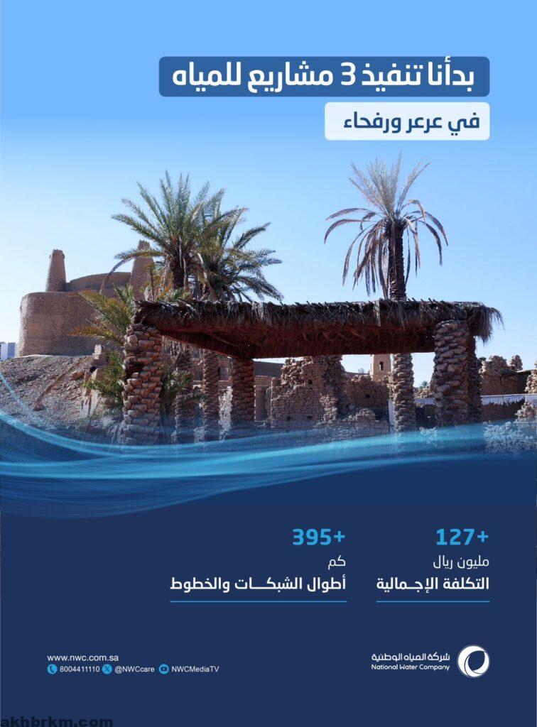 المياه الوطنية تشرع بتنفيذ 3 مشروعات في منطقة الحدود الشمالية بكُلفة تجاوزت 127 مليون ريال