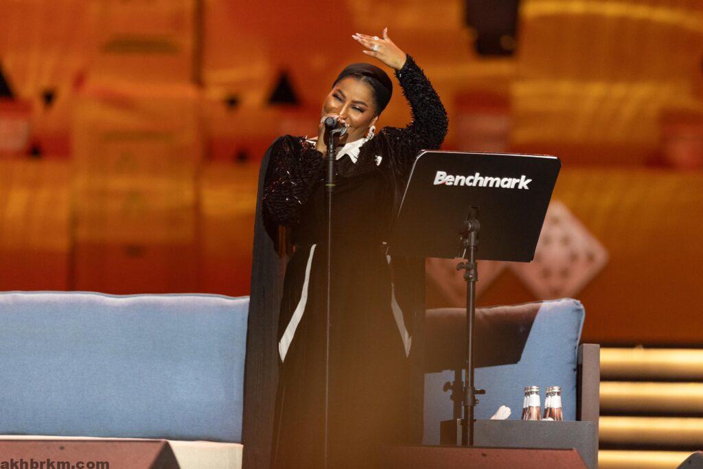 أكملت الساعة الثانية للحفل صاحبة الجماهيرية الكبيرة الفنانة موضي الشمراني، التي اضافت للجمهور الحماس المستمر بعباراتها المعروفة