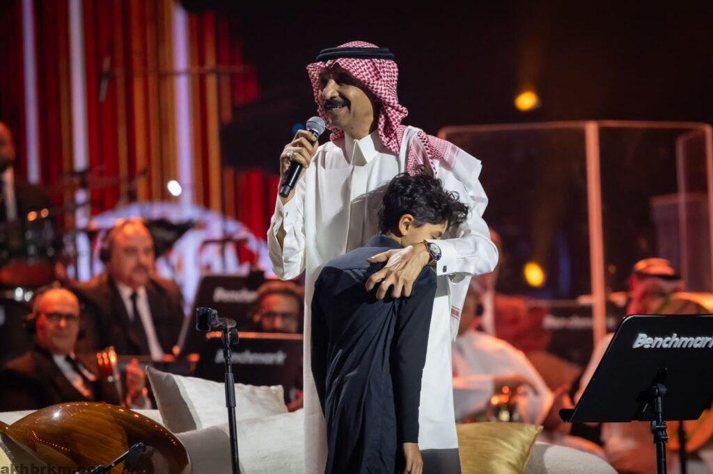و شهد ختام الحفلة ظهور حفيد الفنان عبادي الجوهر على خشبة المسرح ليقف برفقته قبل أن يودع الجمهور الحاضر الذي صفق بحرارة لهذه الليلة الكبيرة .