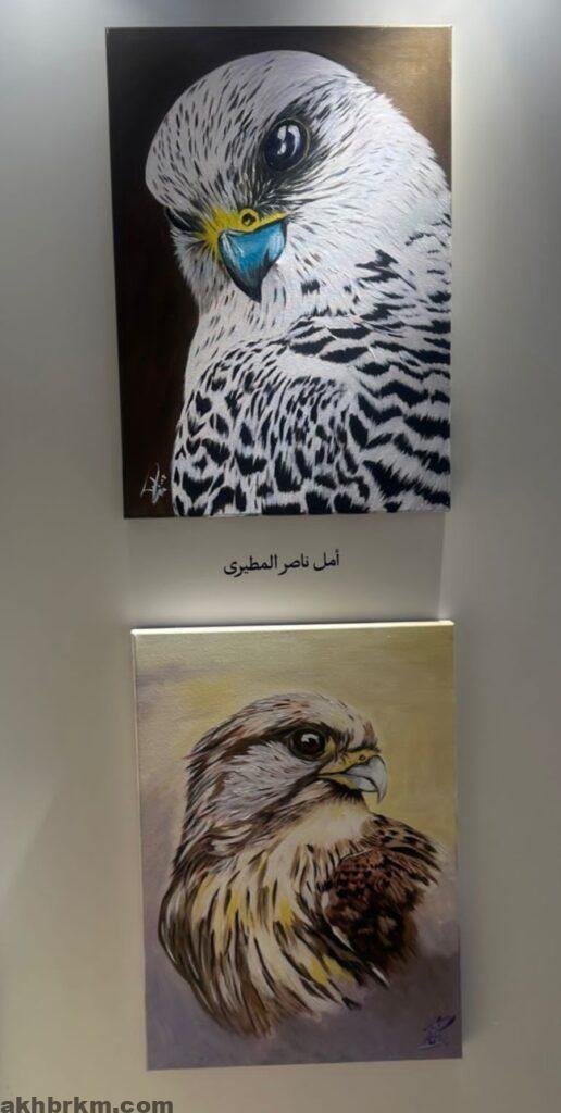 التشكيليه أ.أمل المطيري التي شاركت بلوحتين مميزين تعبر بهم عن الصقر وتميزه حيث ابدا. الحاضرين إعجابهم بلوحاتها المميزه وانها فخوره بتواجدها في هذا المعرض الفني الدولي المميز .
