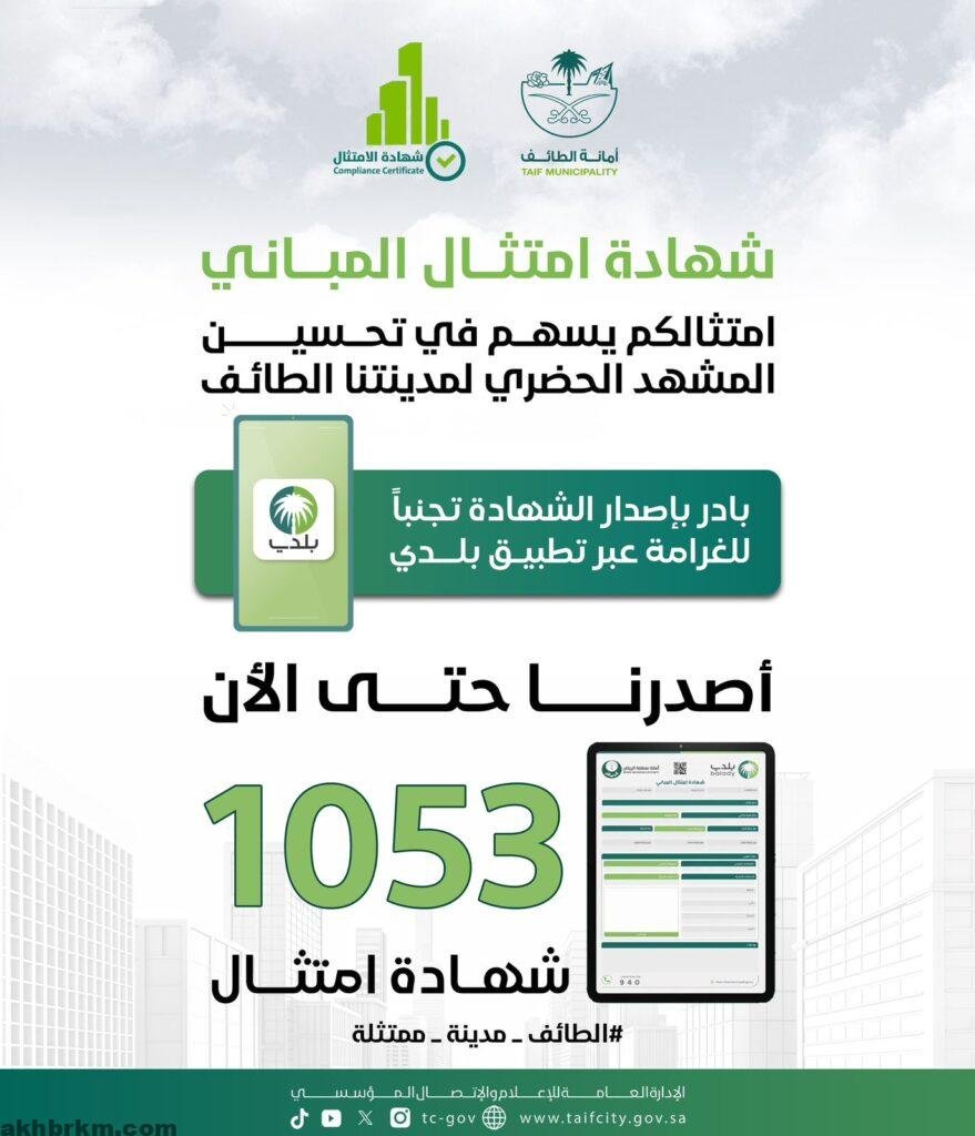 أمانة الطائف تصدر 1053 شهادة “امتثال” للمباني الحكومية والتجارية والسكنية