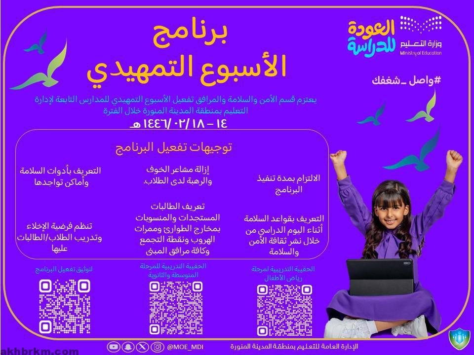 بدأ التحضير لبداية العام الدراسي الجديد قبل أسبوعين من عودة الطلاب والطالبات لمدارسهم بداية من عودة المشرفين والمشرفات و الكوادر الإدارية في جميع المدارس ونهيئة الفصول الدراسية والمقررات والتجهيزات المدرسية ووضع الخطط الدراسية لكل مدرسة وإكمال العجز من المعلمين والمعلمات والكتب الدراسية وتهيئة المباني وصيانتها، كما نشرت إدارة التعليم بالمدينة المنورة منشورات توعوية وتحفيزية تحمل هوية بصرية مميزة للعودة إلى المدارس في عام نرجو من الله أن يكون مليء بالنشاط والحيوية والإنجاز لجميع طلابنا وطالباتنا في جميع المراحل الدراسية.