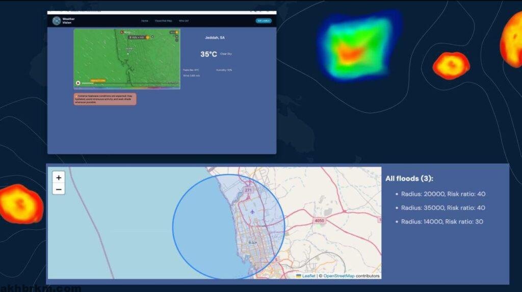ويعتمد “رؤية الطقس” على حلول متعددة لمراقبة الفيضانات في الوقت الفعلي، عبر تتبع هطول الأمطار ومستويات المياه السطحية باستخدام صور الأقمار الصناعية وبيانات الاستشعار عن بُعد.