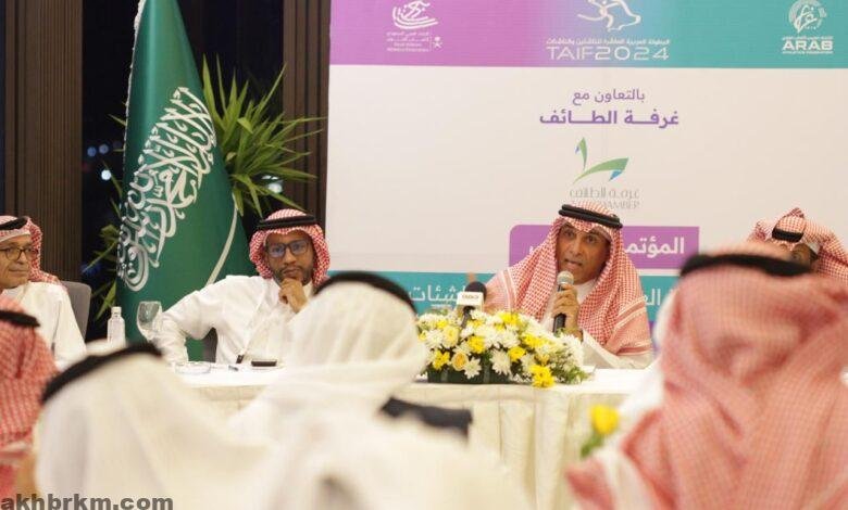 اقيم يوم الاربعاء الموافق 1446/3/8 ه المؤتمر الصحفي للبطولة العربية لألعاب القوى للناشئين والناشئات والمقامة في محافظة الطائف ، للتعريف عن البطولة وجميع التفاصيل عنها، وتأكيد دور الإعلاميين في نجاح و انتشار هذه البطولة