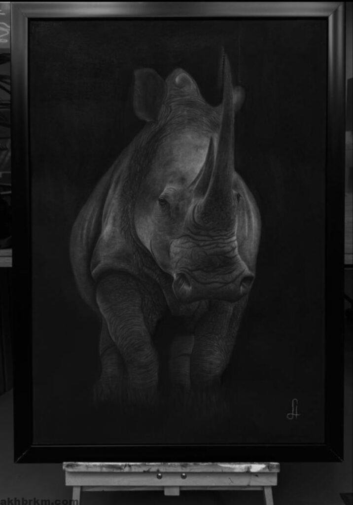 آخر أعمالي المنجزه والعمل الصعب الممتع بالنسبه لي والي اضهرت فيه اعلا مستوى لي بالفحم كاتجربه وتكنيك جديد في اضهار بعض التجاعيد بالفحم الابيض والتفاصيل الدقيقه 🦏.