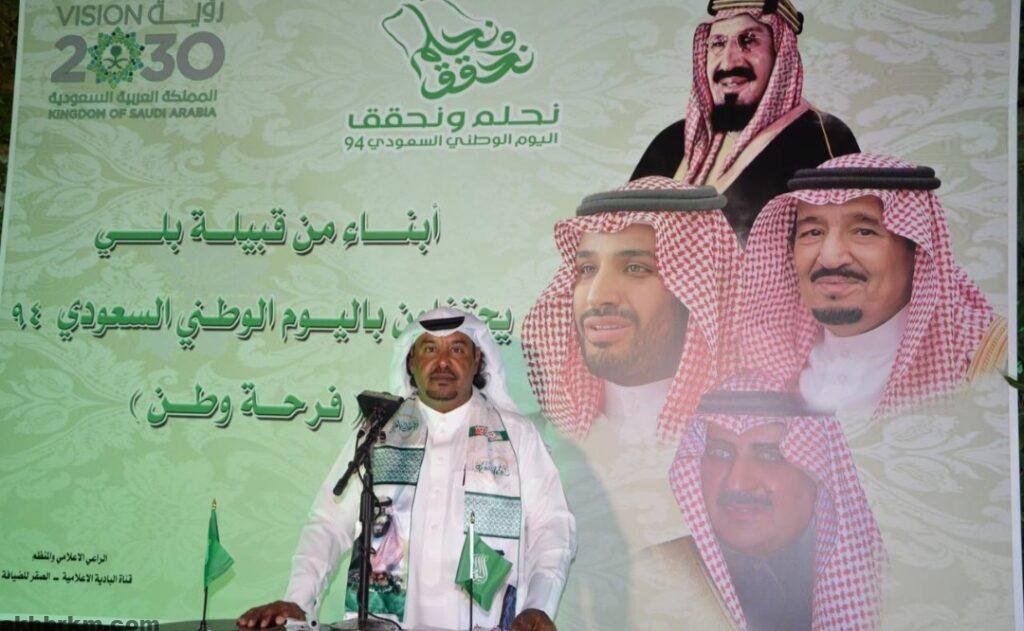 موضحا في كلمته انه في مثل هذا اليوم قبل اكثر من ٩٤عاما توحدت أصوات أبناء الجزيرة العربية تحت لواء واحد، واجتمعت قلوبهم على حب وطنهم وولائهم لقادتهم الحكماء، إنه ذكري اليوم الوطني للمملكة العربية السعودية