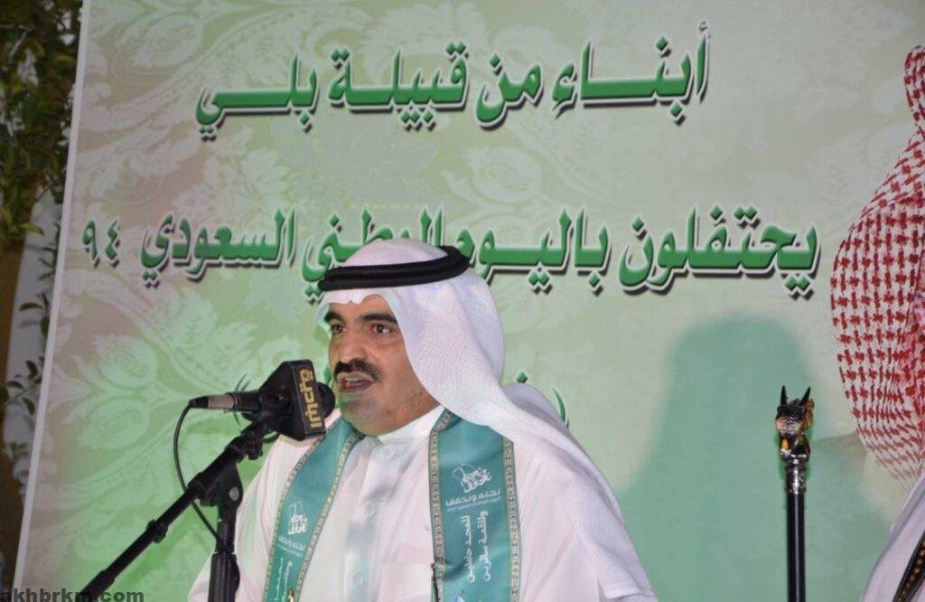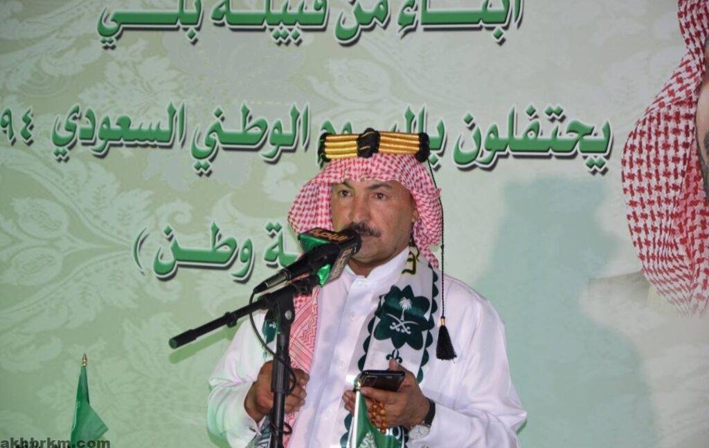 تلي ذلك كلمة لفارس الاحتفاليه للأستاذ/فرج بن عبيد الفاضلي البلوي (صقربلي) رحب بالحضور كثيرا من ابناء عمومته من قبيله بلي بشكل خاص والحضور من كافه القبائل بشكل عام الذين حضور وشرفوا هذا الحفل قبل أن يعرج الي اهمية هذا اليوم في قلوب الشعب السعودي كافه حيث استطرد قائلا تمر بنا هذه الايام ذكري جميلة وغالية علي قلوب الشعب السعودي النبيل ذكري كتبت بمداد من ذهب ذكرى سطرها الاباء الأجداد مع القائد والمؤسس عبدالعزيز ال سعود طيب الله ثراه ليضرب موعدا مع التاريخ لكتابة ملحمه تاسيس وتوحيد بلد مترامي الأطراف بمسمي (المملكة العربية السعودية )