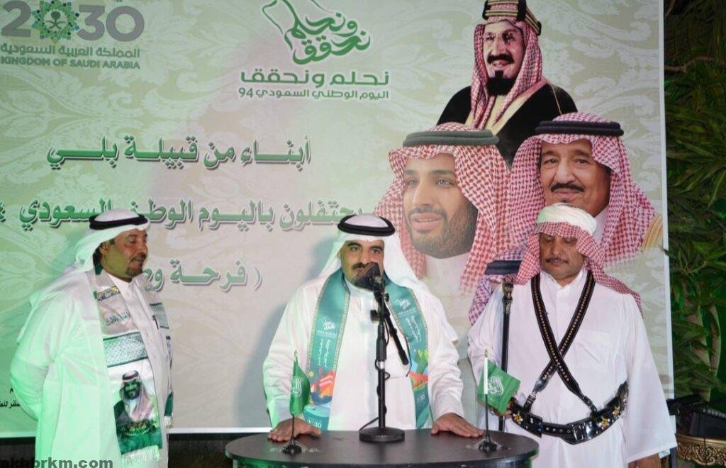 نظم بعض من ابناء قبيلة بلي بتبوك احتفالية في هذه المناسبة الغاليه علي قلوبنا في ديوانية الاستاذ/فرج بن عبيد الفاضلي البلوي (صقر بلي )بحضور لفيف من ابناء قبيلة بلي والضيوف من خارج القبيلة والشيوخ والوجهاء ورجال الأعمال والأصدقاء والزملاء والأعلام ممثلة بصحيفة آخباركم الألكترونية تخلل الاحتفالية وجبة عشاء احتفاء بهذه المناسبه