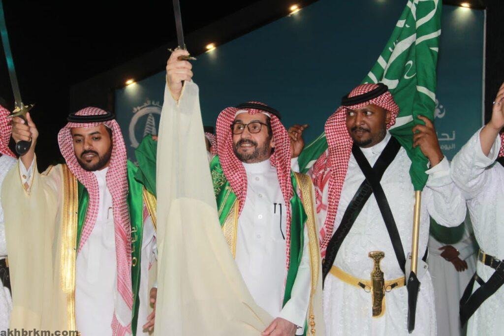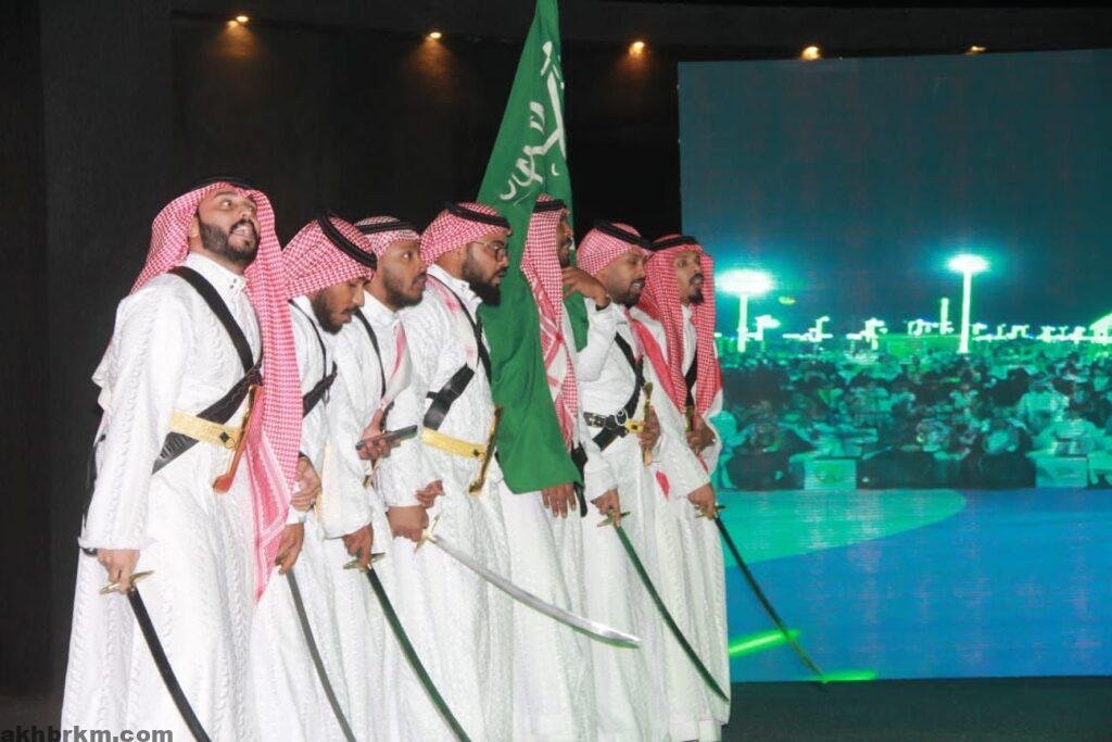 حيث بدأ الحفل الخطابي بالسلام الملكي ثم كلمة الأهالي بهذه المناسبة الغالية على قلوب الجميع ثم قصائد وطنية، وكذلك عدة فقرات احتفالية، وفي للختام شارك سعادة المحافظ مديري الجهات الحكومية والأهالي بالناصفة بالعرضة السعودية.