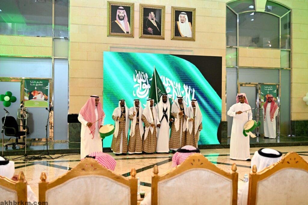 و بدأ الحفل بالسلام الملكي و من ثم وقع الحضور على لوحة ” بصمة وطن ” ، بعد ذلك شاهد الحضور عرضاً مرئياً يبرز مسيرة الوطن التنموية ، كما تضمنت الفعالية الإحتفاء أيضاً بالعرضة السعودية تعبيراً عن الفرح و السلام باليوم الوطني ال 94 .