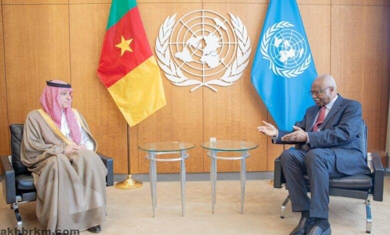 وجرى خلال اللقاء، بحث أبرز الموضوعات الدولية والإقليمية والتطورات في المنطقة، ودور المملكة ومبادراتها وبرامجها في مجال المناخ والحفاظ على البيئة وحماية كوكب الأرض، بالإضافة إلى الموضوعات المطروحة في أجندة الدورة الحالية للجمعية العمومية.