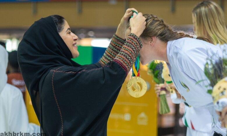 توجت صاحبة السمو الملكي الأميرة دليل بنت نهار، الرئيس التنفيذي لدورة الألعاب السعودية، الفائزين والفائزات في منافسات السباق الثلاثي، التي أقيمت اليوم السبت في مجمع الأمير فيصل بن فهد الأولمبي، ضمن دورة الألعاب السعودية 2024 في نسختها الثالثة، بحضور علي مقبول، رئيس الاتحاد السعودي للسباق الثلاثي “الترايثلون”.