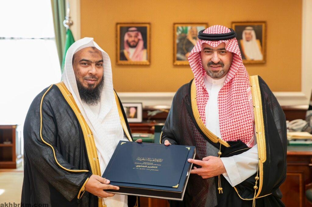واطلّع سموه خلال الاستقبال على التقرير السنوي للرئاسة العامة لهيئة الأمر بالمعروف والنهي عن المنكر ، ومايحتويه من جهود ميدانية وتوعوية أسهمت في نشر الوعي والوسطية والاعتدال بين المجتمع. ونوه الأمير خالد بن سعود باهتمام القيادة الرشيده -أيدها الله – بشعيرة الأمر بالمعروف والنهي عن المنكر . مؤكداً أهمية ما تقوم به الرئاسة العامة لهيئة الأمر بالمعروف والنهي عن المنكر من أعمال ومهام بالمنطقة .