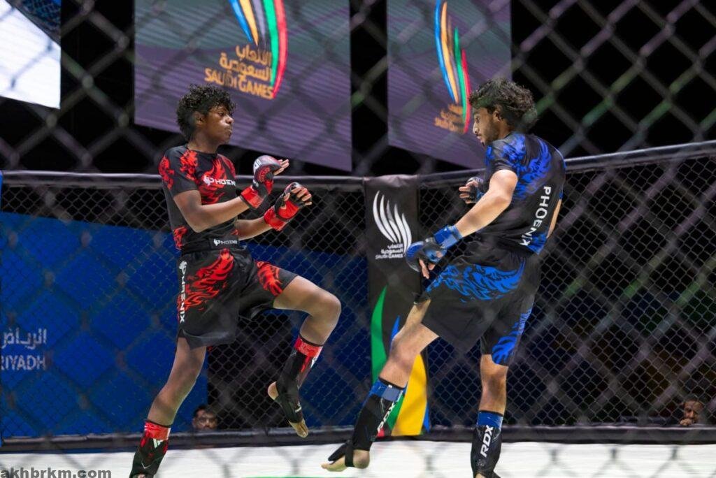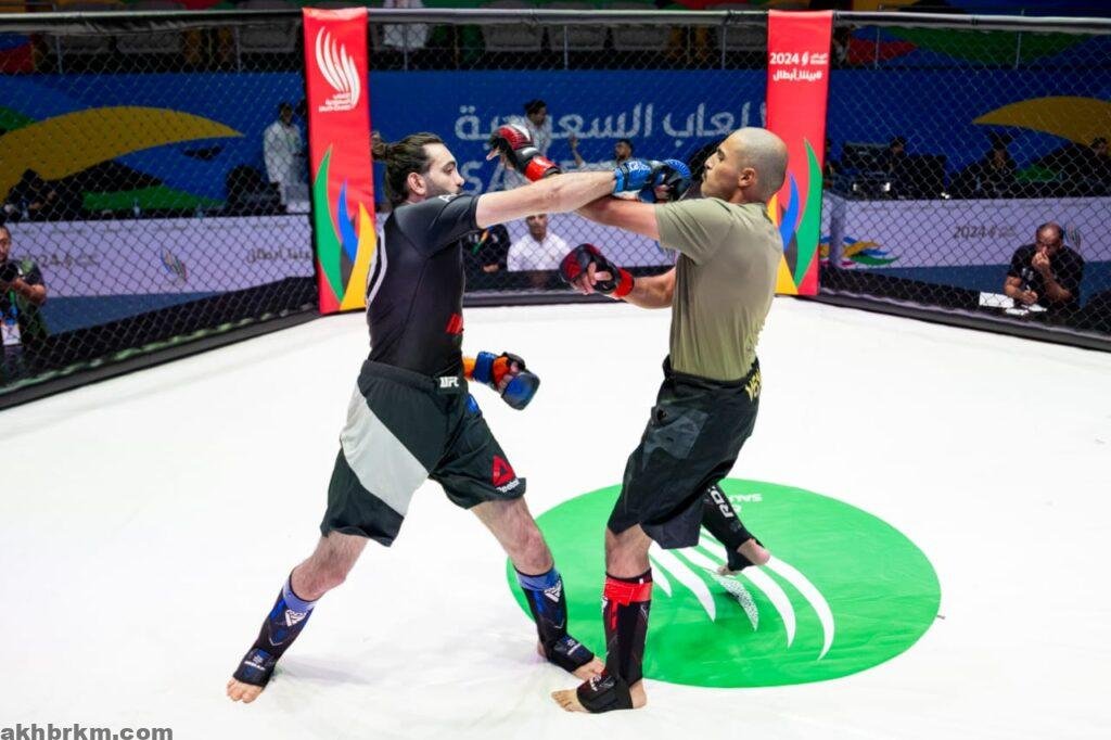 حجز 6 لاعبين مقاعدهم في نهائيات 3 أوزان ببطولة فنون القتال المختلطة، ضمن دورة الألعاب السعودية (الثالثة) 2024، خلال المنافسات التي جرت اليوم الأربعاء في بوليفارد 4.