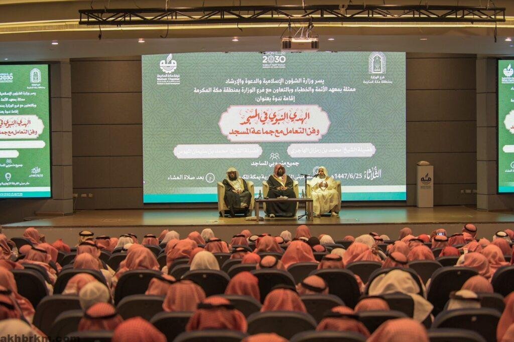 نظّمت وزارة الشؤون الإسلامية والدعوة والإرشاد، ممثلة بمعهد الأئمة والخطباء مساء يوم أمس الثلاثاء 16 ديسمبر 2025م، ندوة تدريبية لمنسوبي المساجد بمكة المكرمة بعنوان “الهدي النبوي في المسجد وفن التعامل مع جماعة المسجد” وذلك بمقر الغرفة التجاريه بالعاصمة المقدسة.