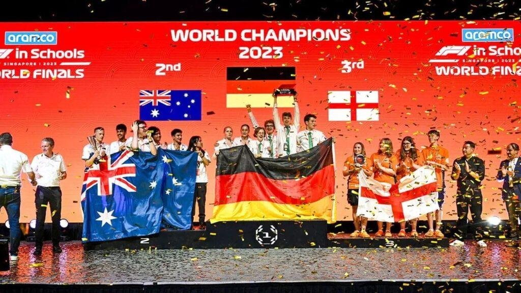 الفرق الفائزة في النهائيات العامية لبطولة أرامكو فورمولا1 في المدارس 2023م التي عقدت في سنغافورة