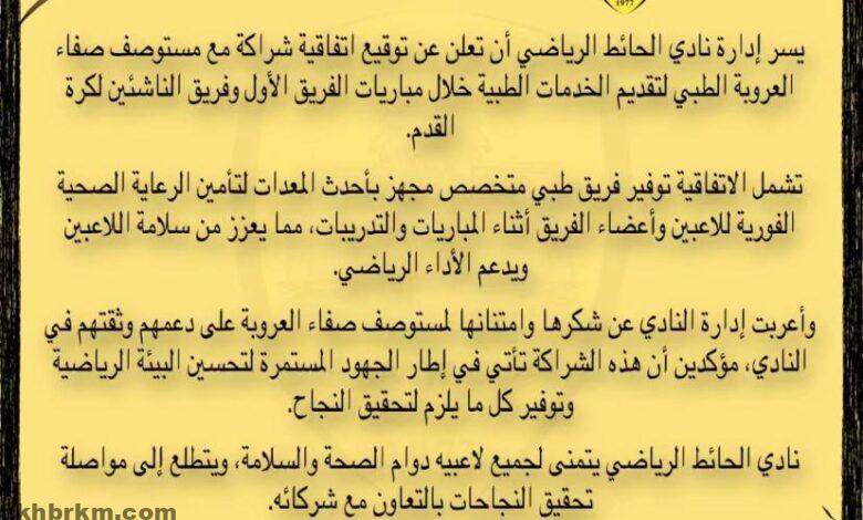 نادي الحائط ومستوصف صفاء العروبه الطبي يوقعان مذكرة شراكة