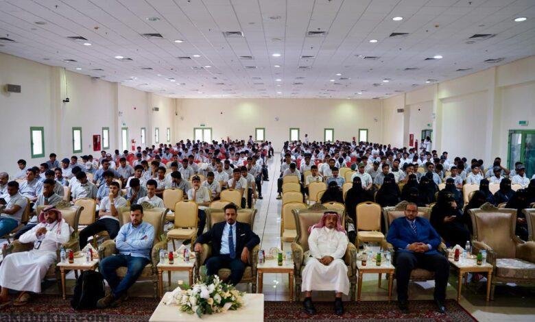 ووكيل شؤون المتدربين بالكلية التقنية بجازان المهندس جبريل خرمي وسعادة مدير عام فرع الرئاسة العامة للبحوث العلمية والإفتاء بالمنطقة عبدالله بن علي حمدي، بالإضافة إلى عدد كبير من طلاب وطالبات الكلية التقنية بجازان ، وذلك على مسرح الكلية التقنية بمدينة