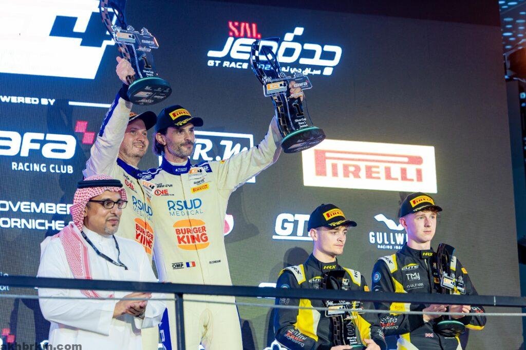 وتوّج صاحب السمو الملكي الأمير خالد بن سلطان العبدالله الفيصل رئيس مجلس إدارة الاتحاد السعودي للسيارات والدراجات النارية وشركة رياضة المحركات السعودية، بنجامين لاريش وروبرت كونساني من فريق سبيدكار، والذي فاز بالسباق الأول لسلسلة سباقات جي تي 2 الأوروبية المدعومة من نادي رافا للسباقات، تلاه أليكس دينينج، وتوماس إيمسون من فريق إيليت موتور سبورت في المركز الثاني، وبفارق 3 ثوانٍ و472 جزءاً من الثانية، تبعهما زميلهما في الفريق جوشوا راتيكان، وتوماس ليبون، في المركز الثالث وبفارق ثانيتين و117 جزءاً من الثانية، فيما جاء فريقا سبريت أوف ليمان رابعاً، وليسباس بيافينوي في المرتبة الخامسة.