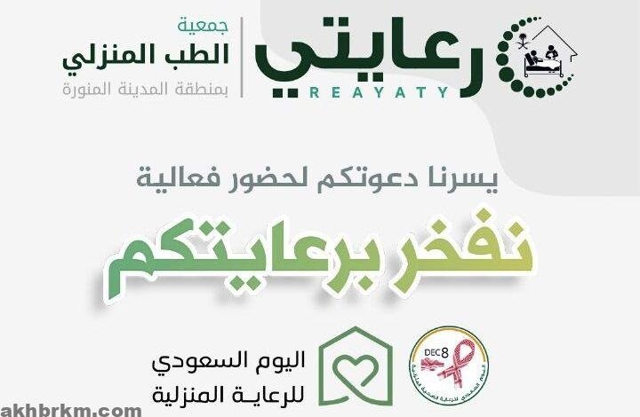 تعتزم جمعية الطب المنزلي رعايتي بمنطقة المدينة المنورة إقامة مبادرة مجتمعية ,تحت شعار“نفتخر برعايتكم ” ويأتي ذلك تزامناً مع اليوم السعودي للرعاية المنزلية ، حيث تهدف المبادرة إلى نشر ثقافة الرعاية الصحية المنزلية للمرضى المستهدفين بهذه الخدمات ، وتسليط الضوء على جهود ودور المملكة العربية السعودية في تعزيز منظومة الرعاية الصحية المتكاملة ولا سيما الرعاية الصحية المنزلية ، ضمن برامج وأنشطة متنوعة تصاحب المبادرة .