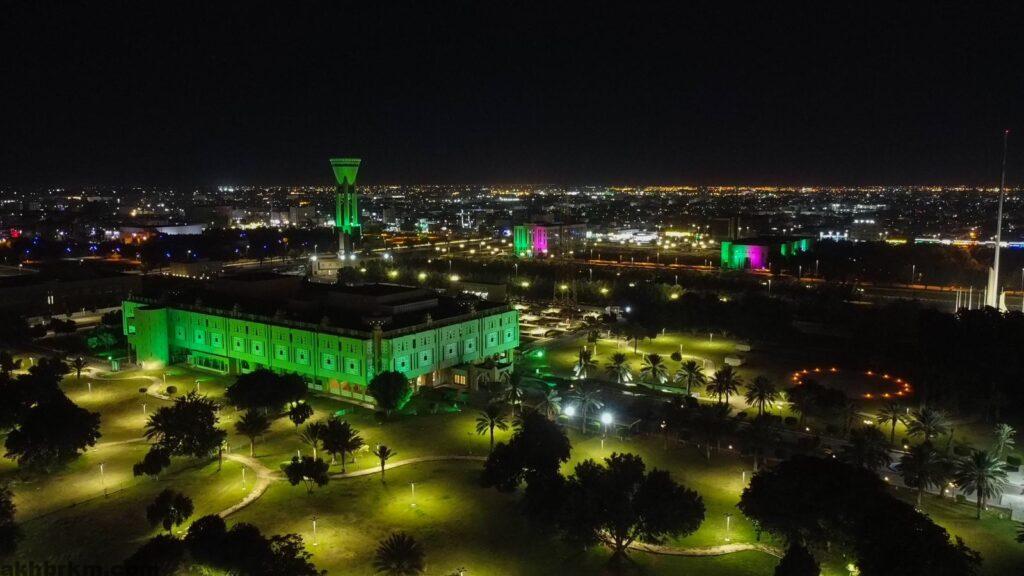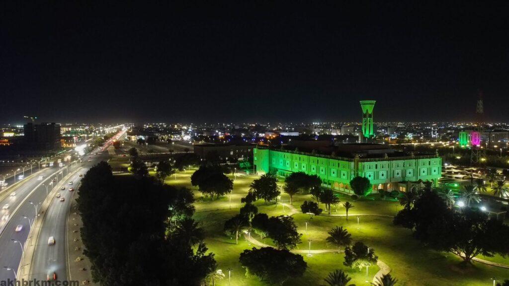 اكتسى مبنى إمارة منطقة تبوك باللون الأخضر في مشهد احتفالي رائع، تعبيرًا عن الفخر والبهجة باستضافة المملكة العربية السعودية كأس العالم 2034. غطت الإضاءة الخضراء كامل المبنى من جميع جهاته الأربع، بالإضافة إلى المرافق المحيطة به، في مشهد يعكس فرحة الوطن بهذا الإنجاز الكبير الذي يعزز مكانة المملكة عالميًا ويبرز تطورها في شتى المجالات.