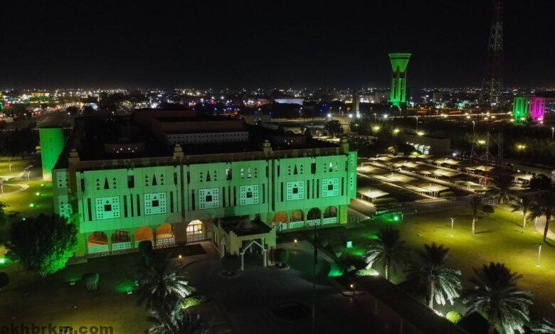 مبنى إمارة منطقة تبوك يكتسي باللون الأخضر ابتهاجاً باستضافة المملكة كأس العالم 2034.