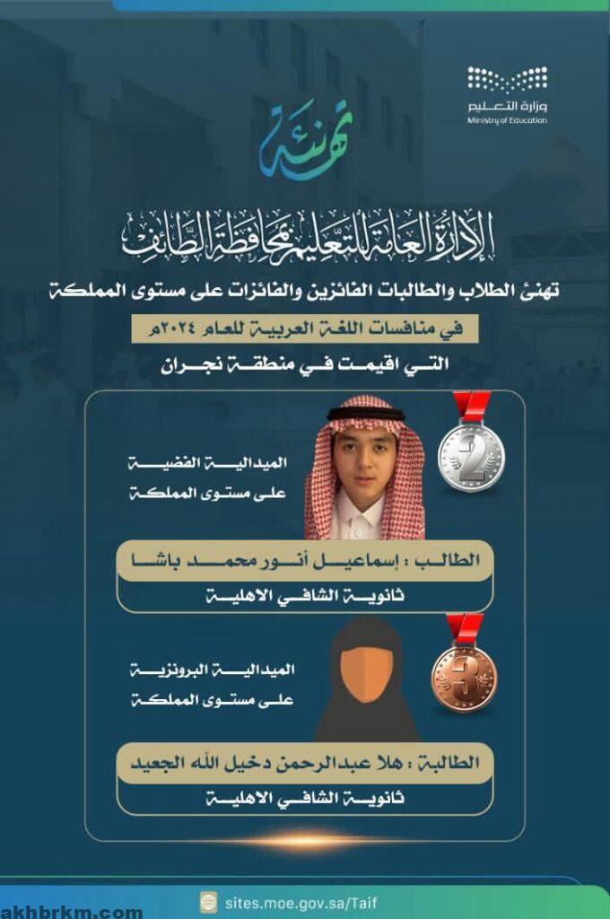 تعليم الطائف يحصد الميداليات الفضية والبرونزيّة على مستوى المملكة في منافسات اللغة العربية