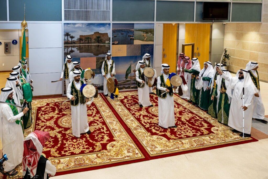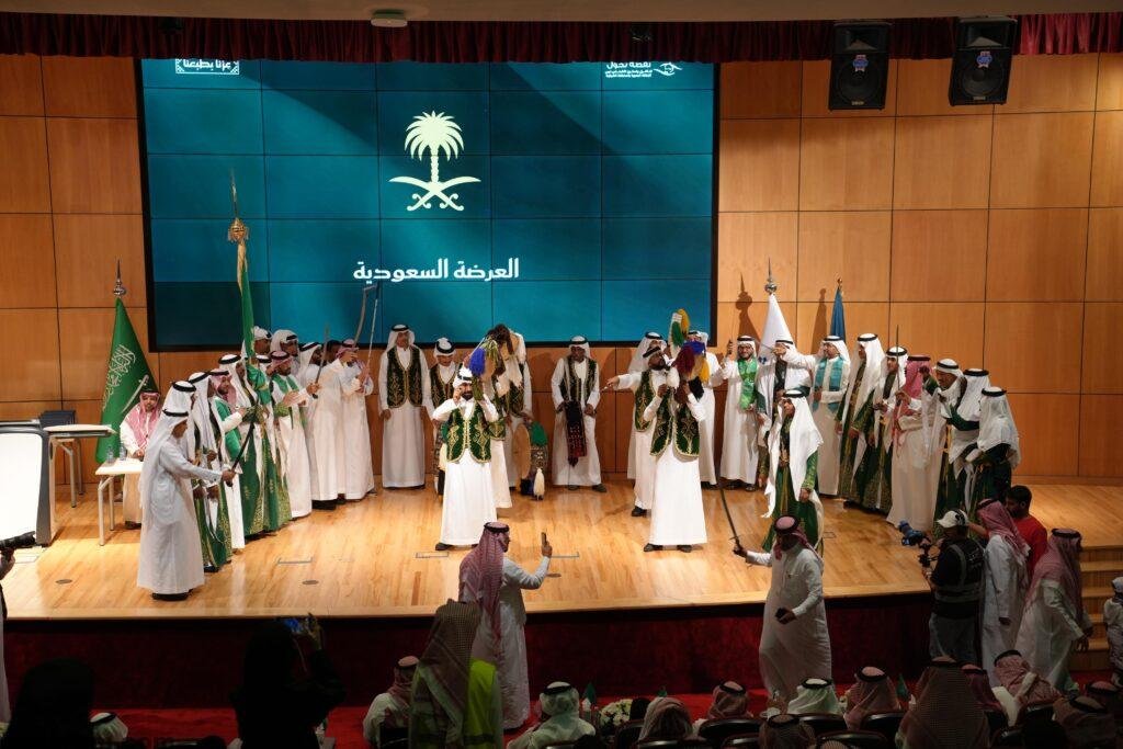 شهد الحفل حضوراً لافتاً ومشاركة واسعة من أبناء وبنات الوطن من ذوي الإعاقة البصرية، الذين قدّموا فقرات مفعمة بالإبداع والولاء. تنوعت الفعاليات بين قصيدة شعرية مؤثرة ألقاها أحد المكفوفين، وأوبريت وطني جسّد حب الوطن، إضافة إلى العرضة السعودية التي ألهبت حماس الحاضرين.