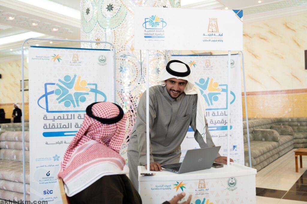 وبدأت القافلة خدماتها هذا الأسبوع في مركزي بلخزمر ودوس بحضور معالي رئيس جامعة الباحة الأستاذ الدكتور عبد الله الحسين، وأمين منطقة الباحة الدكتور علي السواط ، ومحافظ المندق قاسم بن سعيد ، حيث تم تقديم مجموعة من الخدمات الرقمية من قبل الجهات المشاركة، شملت وزارة الموارد البشرية والتنمية الاجتماعية، صندوق تنمية الموارد البشرية (هدف)، أمانة منطقة الباحة، جامعة الباحة، بنك التنمية الاجتماعية، الأحوال المدنية، الجوازات، وشركة الاتصالات السعودية، وفرع وزارة البيئة والمياه والزراعة وغيرها من الجمعيات والجهات الخدمية.