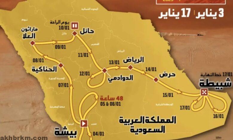 وسينطلق الرالي من محافظة بيشة للمرة الأولى، ليعبر المسار من جنوب السعودية إلى شمالها، ثم التوجه شرقًا للوصول إلى نقطة الختام بالشبطية في الربع الخالي، أكبر صحراء رملية متّصلة في العالم، في رحلة تستغرق 14 يومًا، وتشمل العديد من المناطق التي تضم مختلف أنواع التضاريس، ما يتيح للمشاركين من مختلف أنحاء العالم فرصة استكشاف أروع المناظر الطبيعية الخلابة، والمناطق الأثرية العريقة في السعودية,