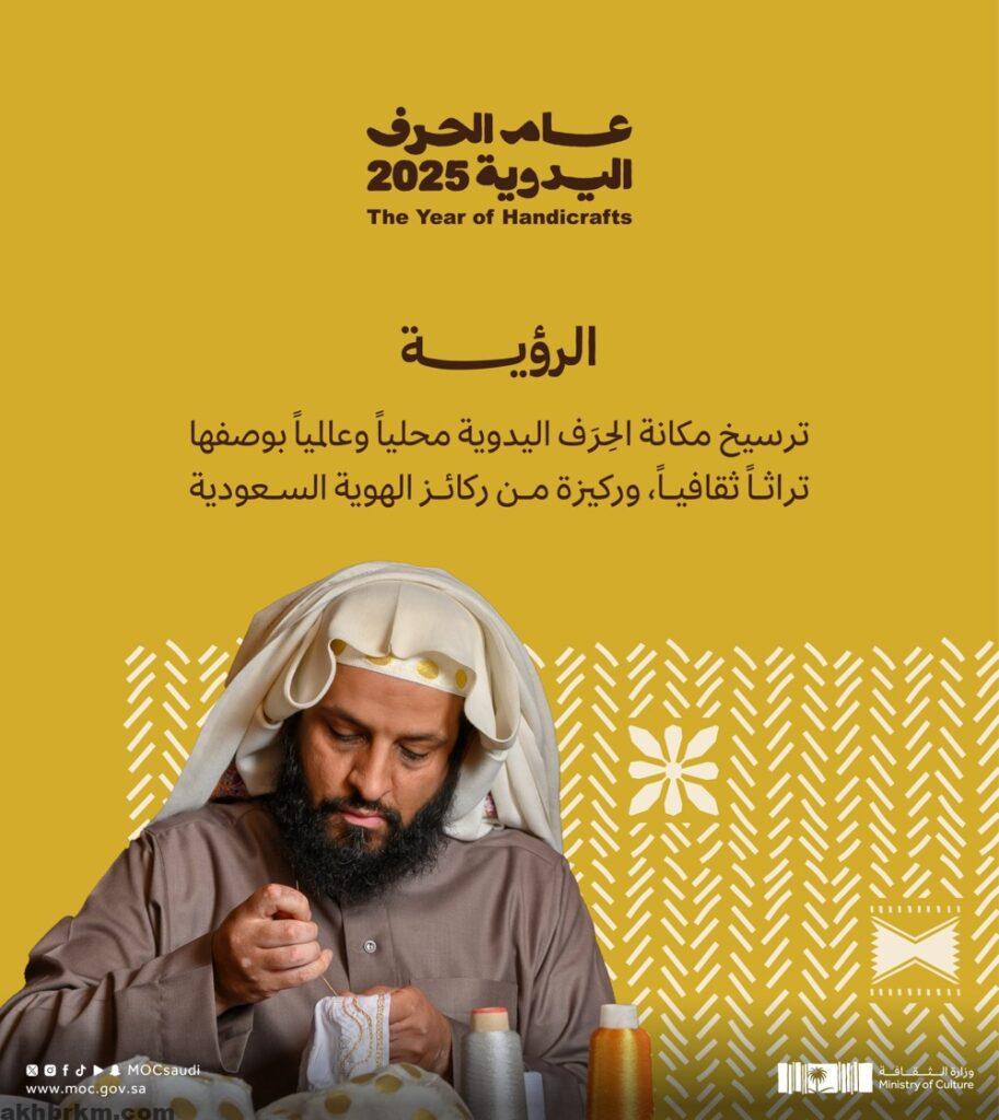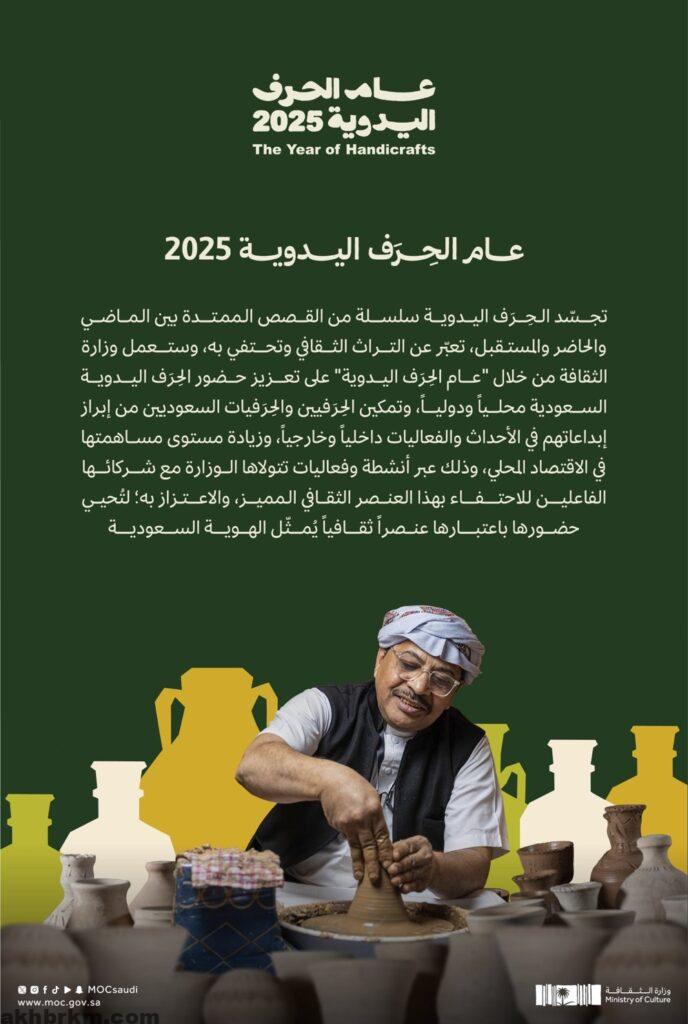 انطلاقًا من موافقة مجلس الوزراء على تسمية عام 2025 بـ”عام الحرف اليدوية”، أعلنت وزارة الثقافة إطلاق سلسلة من الفعاليات والمبادرات للاحتفاء بالحرف اليدوية التي تمثل جزءًا أصيلًا من التراث الثقافي السعودي.
