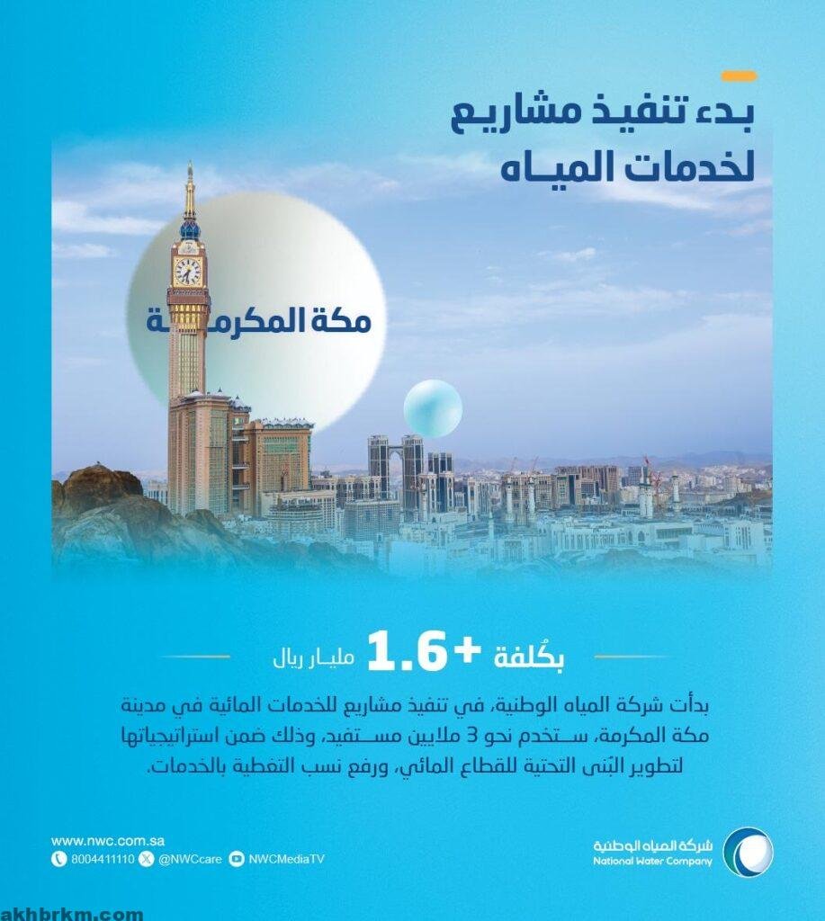 المياه الوطنية : بدأنا تنفيذ مشاريع المياه في مكة المكرمة بكلفة تجاوزت 1.6 مليار ريال