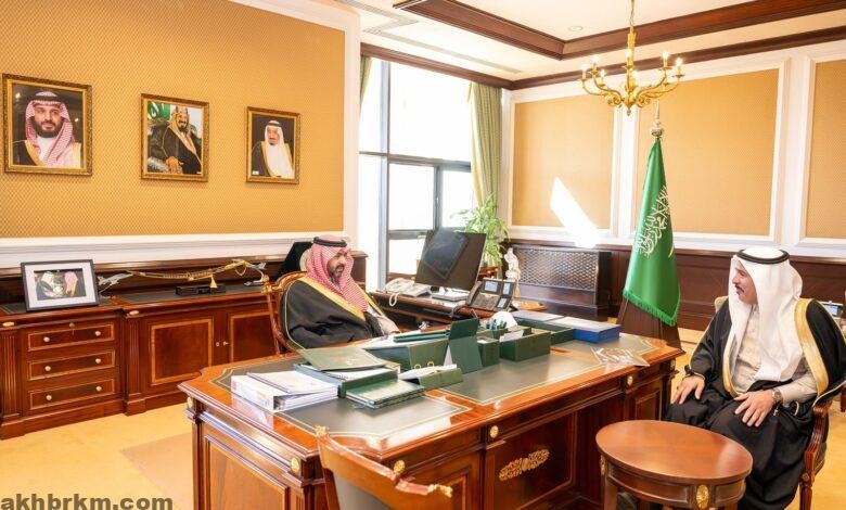 جاء ذلك خلال استقبال سموه بمكتبه اليوم، مدير عام فرع وزارة التجارة بمنطقة تبوك المهندس سالم بن سليمان الوباري، حيث اطلع خلاله على إيجازٍ عن أعمال الفرع بالمنطقة والأعمال الرقابية التي تتعلق بحماية المستهلك وخدمة قطاع الأعمال في مدينة تبوك والمحافظات والمراكز التابعة لها.