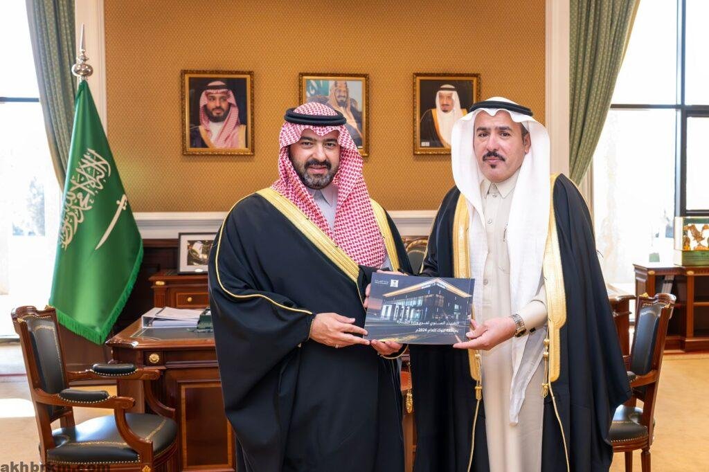 تسلّم صاحب السمو الملكي الأمير خالد بن سعود بن عبدالله الفيصل بن عبدالعزيز نائب أمير منطقة تبوك، التقرير السنوي لإنجازات وأعمال فرع وزارة التجارة بالمنطقة لعام 2024 م .