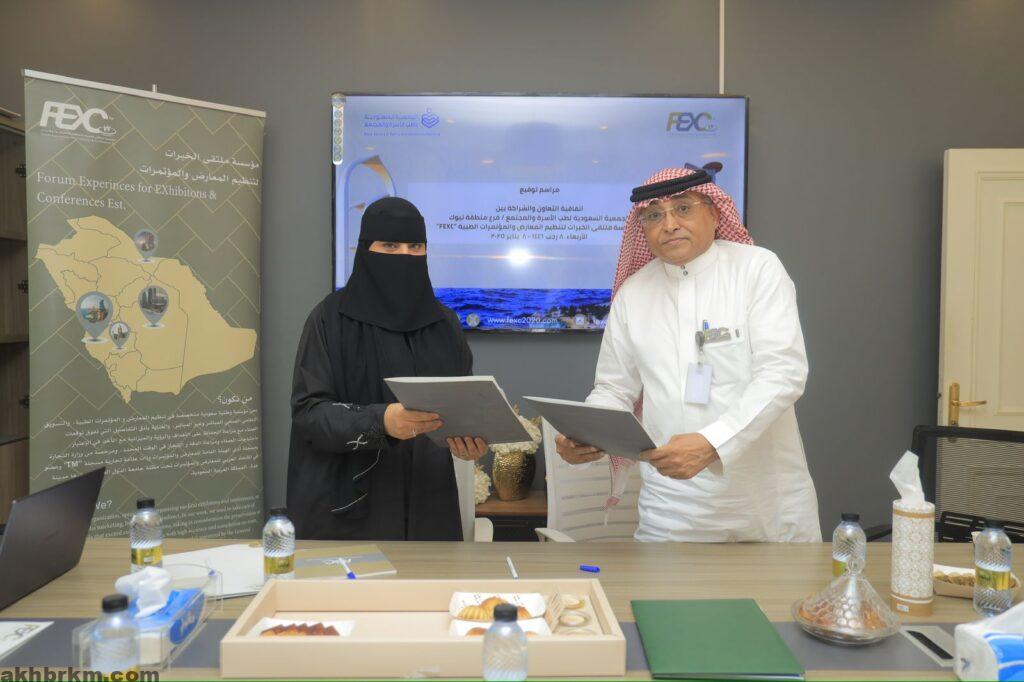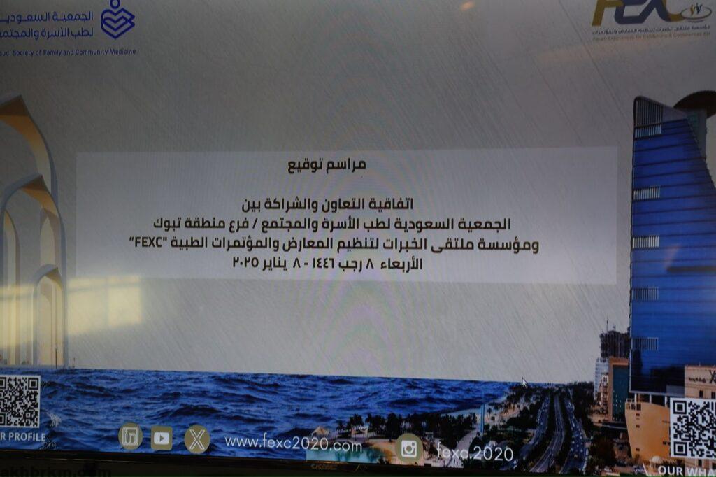 وقعت الجمعية السعودية لطب الأسرة والمجتمع فرع منطقة تبوك ممثلة في المشرف العام على الفرع الدكتورة مرام المحمدي، اتفاقية تعاون مع مؤسسة ملتقى الخبرات لتنظيم المعارض والمؤتمرات الطبية FEXC، ومثلها في التوقيع رئيسها التنفيذي حسن عبدالرحمن البهكلي وبحضور كل من نائب رئيس مجلس إدارة الجمعية السعودية لطب الأسرة والمجتمع الدكتور أشرف أمير نائب والمشرف العام على مكتب الجمعية الدكتور سامي عيد بجدة والدكتور عبدالحفيظ خوجة عضو مجلس إدارة ملتقى الخبرات لتنظيم المعارض والمؤتمرات الطبية والدكتور عمار تنكل الرئيس التنفيذي للجمعية السعودية لتعزيز الصحة وجودة الحياة.