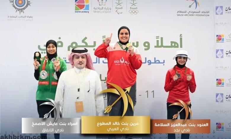 حققت لاعبة السهام بنادي الاتفاق اسراء عايش، إنجازاً لافتاً بفوزها بالمركز الثاني في فئة السهم الأزرق للسيدات ، وذلك خلال مشاركتها في بطولة الصالات المغلقة الثانية، و التي أقيمت في صالة الأمير فيصل بن فهد بالرياض خلال الفترة من 11 إلى 17 يناير الجاري
