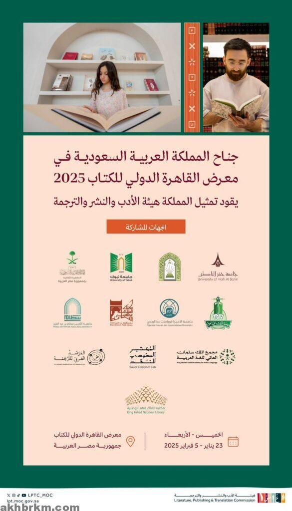 وتأتي مشاركة هيئة الأدب والنشر والترجمة في معرض القاهرة الدولي للكتاب 2025 في إطار الجهود المستمرة؛ لتعزيز حضور المملكة على الساحة الثقافية والأدبية الإقليمية والعالمية، ورفع الوعي بالموروث الثقافي السعودي، وإبراز إسهامات المملكة المتنامية في الحراك الثقافي العالمي.