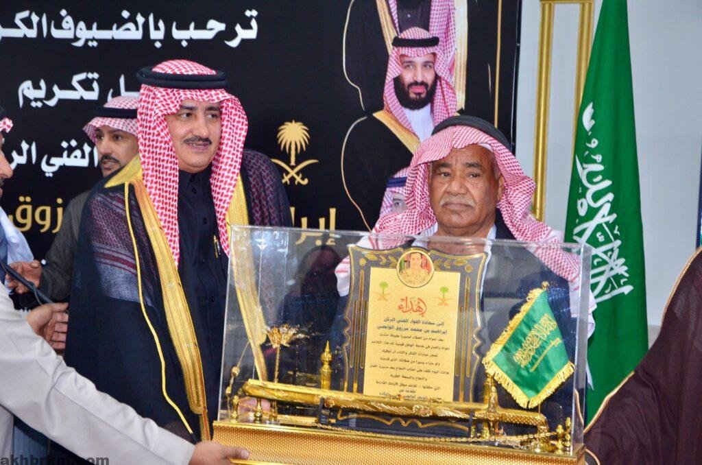 .فوسط حضور العديد من الشخصيات الاعتبارية والمسؤولين والشيوخ والأعيان في المنطقة وزملاء المحتفي به . وشيوخ القبائل والعشائر